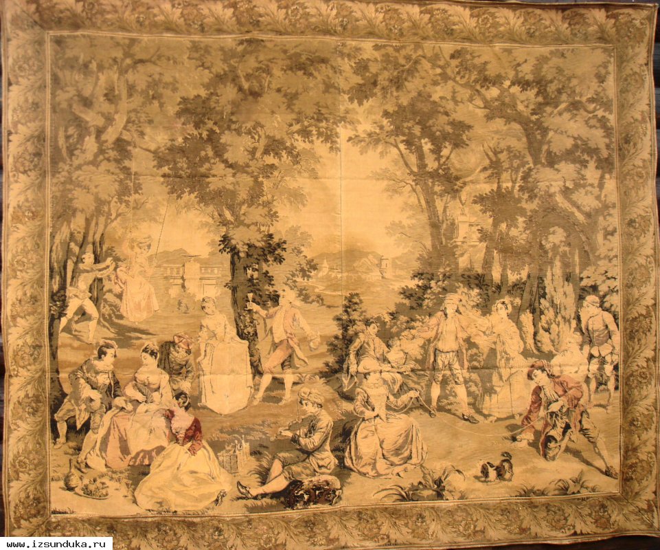 Добавлено 04.04.2018Сюжетный гобелен "Пикник на траве" размер 2,5Х 3,Ом, представляющий собой воспроизведение картины французского художника Карла (Шарля-Андре) Ван Лоо, придворного художника Людовика ХУ. Есть экспертиза Гос.историч.музея: "Западная Европа, 2-я половина 19 века, жаккардовое ткачество". Состояние удовлетворительное.