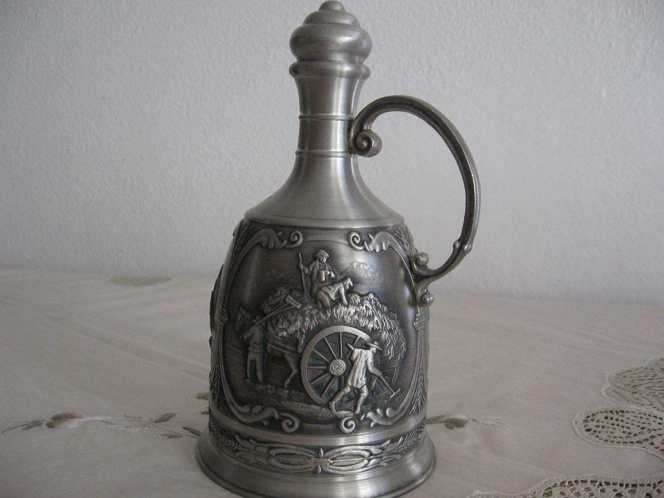 Штоф ликерный.Страна-Германия.Материал-цинк.Литье.Размеры высота-19см диаметр-10см.Эпоха-предположительно 1970гг.Очень изящная вещица.