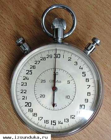 Добавлено 04.04.2018Секундомер механический (СДСпр-1-2) двухстрелочный суммирующего действия механизма управления стрелками с прерываемой работой часового механизма. Калибр механизма 54 мм. Количество камней 20. Класс точности 2. Средняя погрешность за 30 минут +- 0.4 сек. 2-й Московский часовой завод , В отличном рабочем состоянии.Стекло минеральное. Особенность секундомера – частота баланса 36000 полуколебаний в час. Эта частота позволяет замерять интервалы времени с точностью до 1/10 секунды. Для обеспечения такой высокой точности механизм этого секундомера и сделан по высшему классу. Схема механизма "позаимствована" у швейцарской фирмы Lemania (ныне – Montres Breguet).