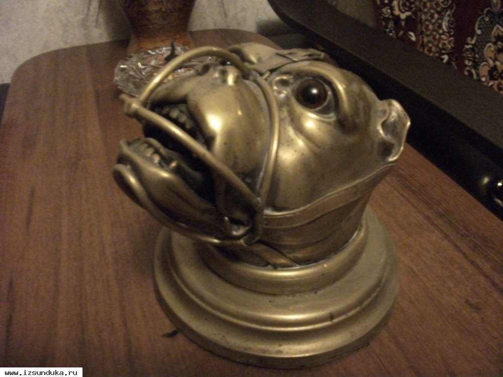 Старинная пепельница в виде головы собакl