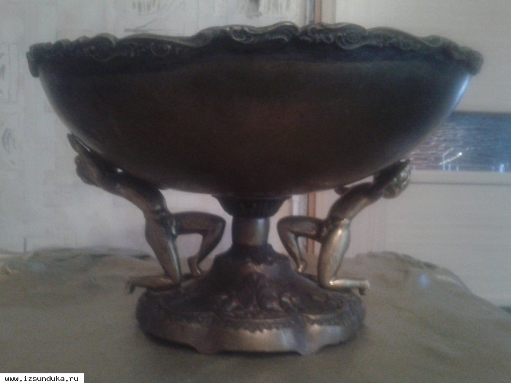 Продаю старую вазу из бронзы и меди.Состояние хорошее.Чаша которую поддерживают 2 мальчика крутится.Ручная работа.Ковка и литье.