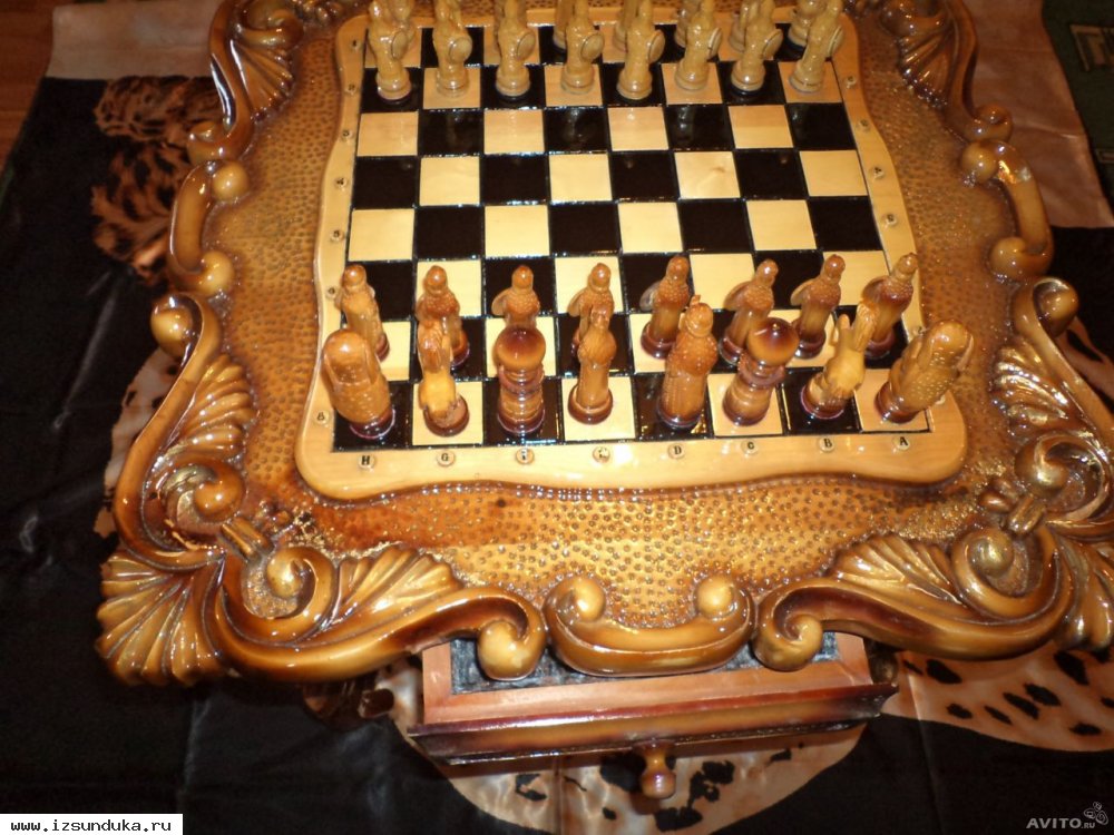 Уважаемые господа обратите внимание на это произведение искусства , шахматный резной стол с резными фигурами , работа мастера , эксклюзив , поверьте впечатление получите от игры такой необычайной работы , творилась эта красота 18 лет , это произведение духовной красоты так как творилась по описаниям древних манускриптов ВЕЛИКОГО И МОГУЩЕСТВЕННОГО ЦАРЯ Соломона владыкой кольца мудрости и доброты .Игра за таким столом оживляет людей и духовно дает знания открывает все закрытые части нашего внутреннего мира.Поверьте вещь живая с душой и по приданиям стол имеет двери которые открывают в человеке массу возможностей ,как предвидеть все заранее.ХОЗЯИНА ОН ВЫБИРАЕТ САМ .ВАШИ ДЕНЬГИ ПОЙДУТ НА ЭКСПЕДИЦИЮ НА ТИБЕТ .НЕ СМОТРИТЕ ЧТО СУММА ПРЕВЫШАЕТ ВАШУ ЖАДНОСТЬ ОНО ЭТОГО СТОИТ. Уверяю вас.!!!!!!!!!!!Творец ваял в Сибири в местах загадочных мест шаманизма и буддизма