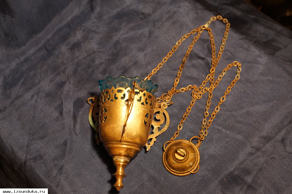 Добавлено 04.04.2018Старинная подвесная лампада из латунного сплава со стаканом из стекла зеленого цвета. Россия, кон. XIX - нач. ХХ вв.