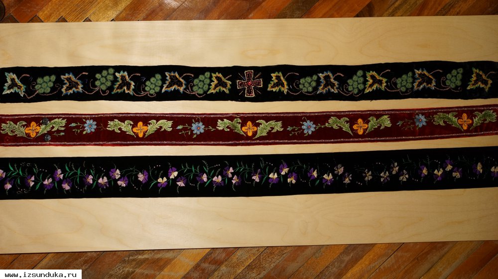 Добавлено 04.04.2018Три старинных расшитых иерейских (архиерейских) пояса.