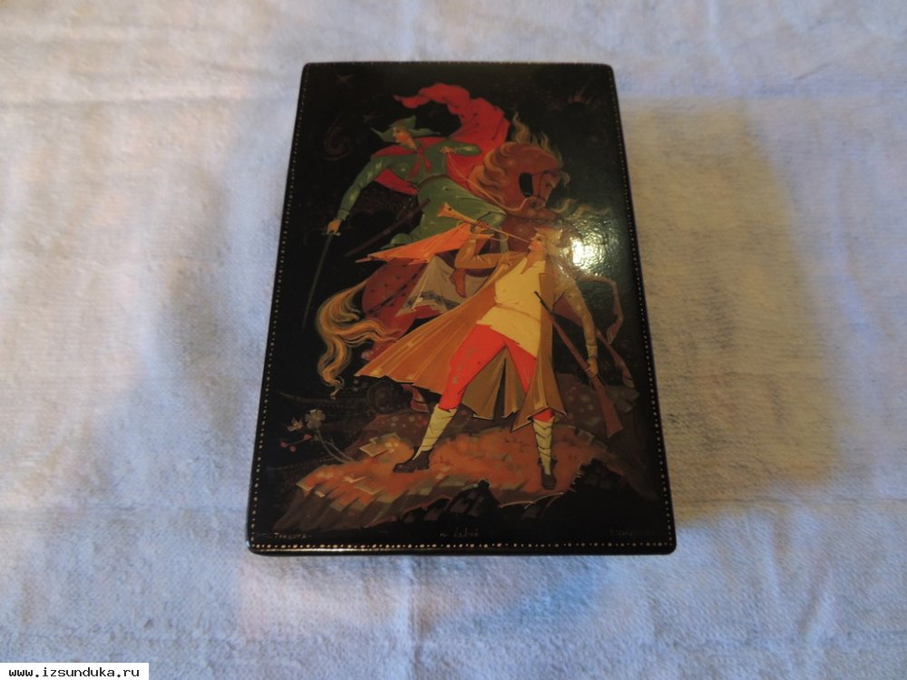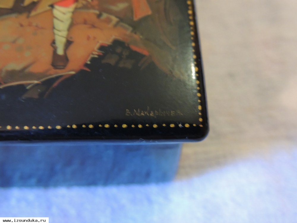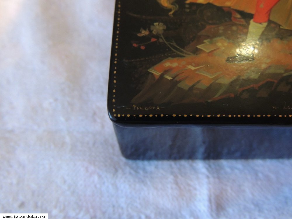 Антикварная шкатулка "Тревога", художник В. Макарычев, г. Холуй. Состояние хорошее. Без реставрации