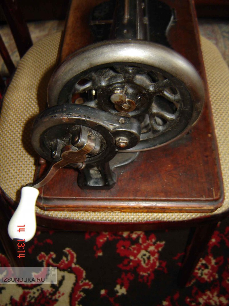 Швейная машинка «Adam Opel», сборка - Германия, цвет – черно-золотая эмаль, очень старая, реликтовая, 1862 г. выпуска, в исправном состоянии, размеры (ВxШхГ): ~600x300x250 мм, небольшой торг уместен