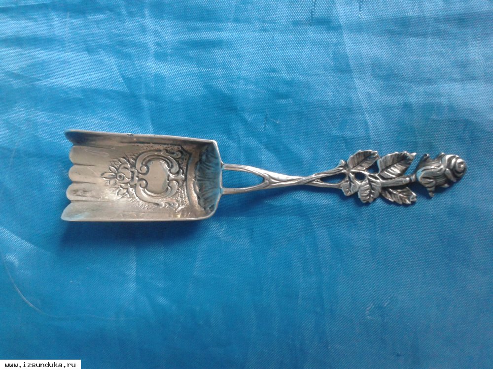 Чайная ложка. Серебро 800 пробы. Ручка декорированная розой. Длина 9.5см.
