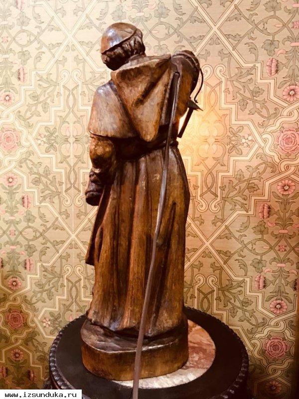 Материалы: фигура монаха и основание - мореный дуб; фонарь – бронза, минеральное стекло.