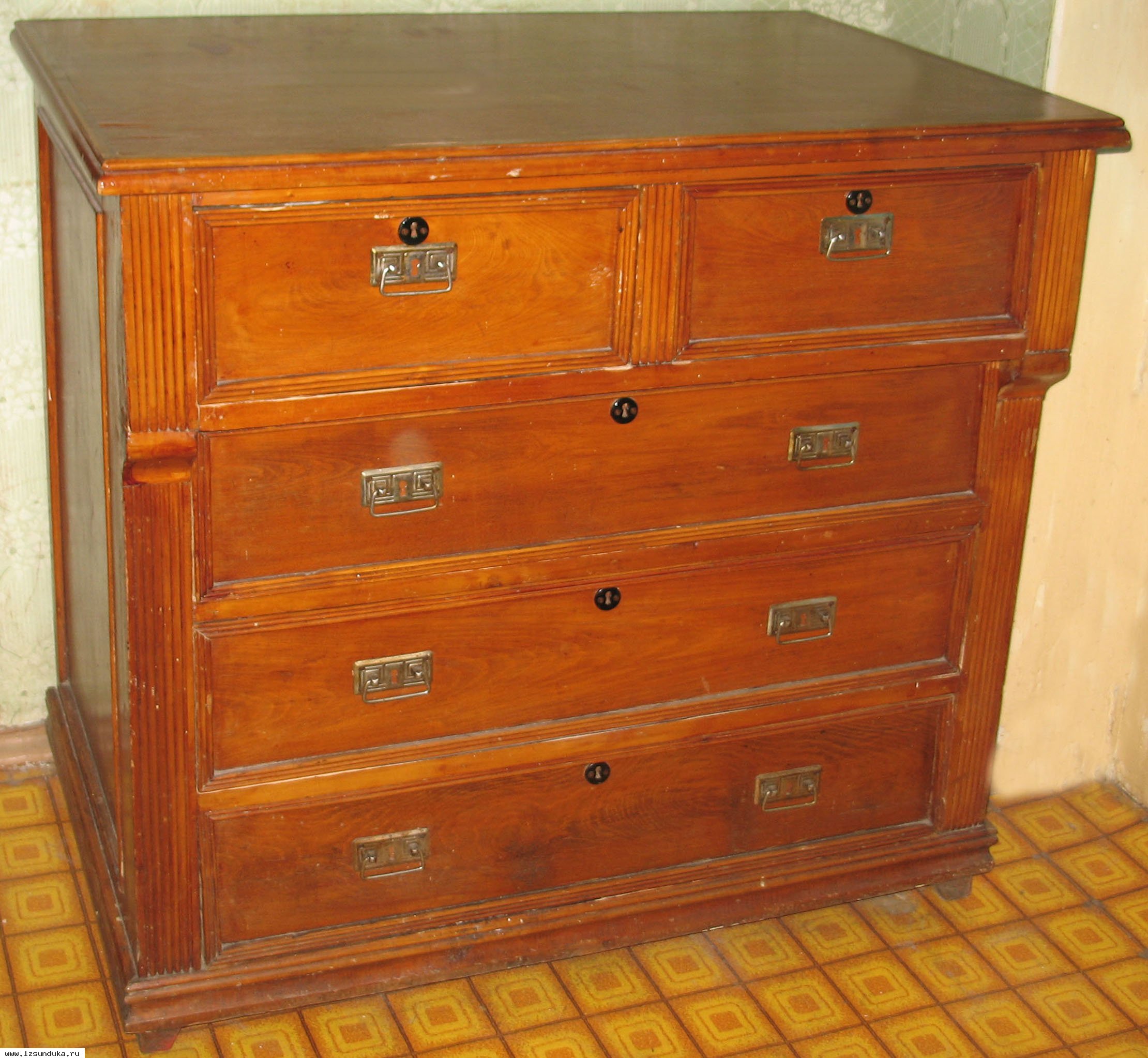 Продается бабушкин комод. Габариты: высота – 1050 мм, длина 1080 мм, ширина 640 мм. Размеры ящиков: 910 х 190 х 620 мм -3 ящика, 430 х 190 х 620 мм - 2ящика.