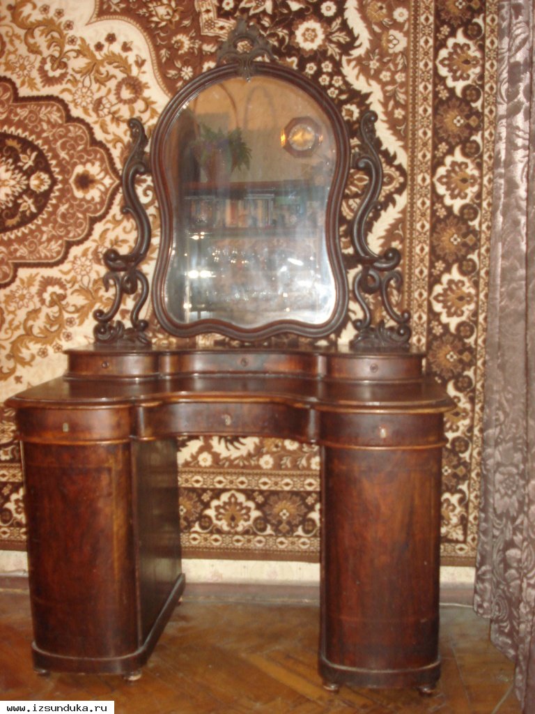 Туалетный стол 19 века. Дуб. Оригинальное зеркало, не билось, не меняли. Цвет темный орех. Хорошее состояние для своего возраста.