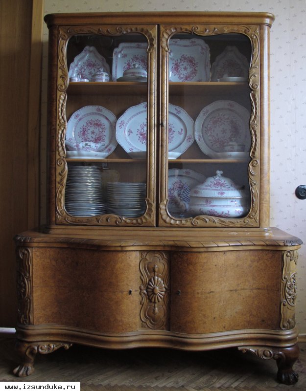 шкаф посудный из комбинированных пород дерева: орех, бук, липа, дуб, наплыв тополя.