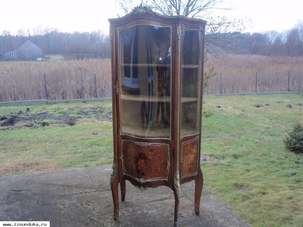 Продам витрину. НЕ подделка XX века! Выполнена в 70-ых - 80-ых годах XIX века. Высота 170см. Предмет вымыт спиртом - минимально прополитурован шерлаком. В 20-ые года ХХ века выменена обивка внутри(в нижней части остался шелк).