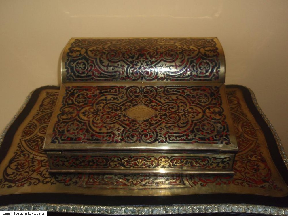 Здравствуйте! Предметом продажи является письменный набор Буль XIX века. Сохранился в отличном состоянии. Его размеры 36смх29см.