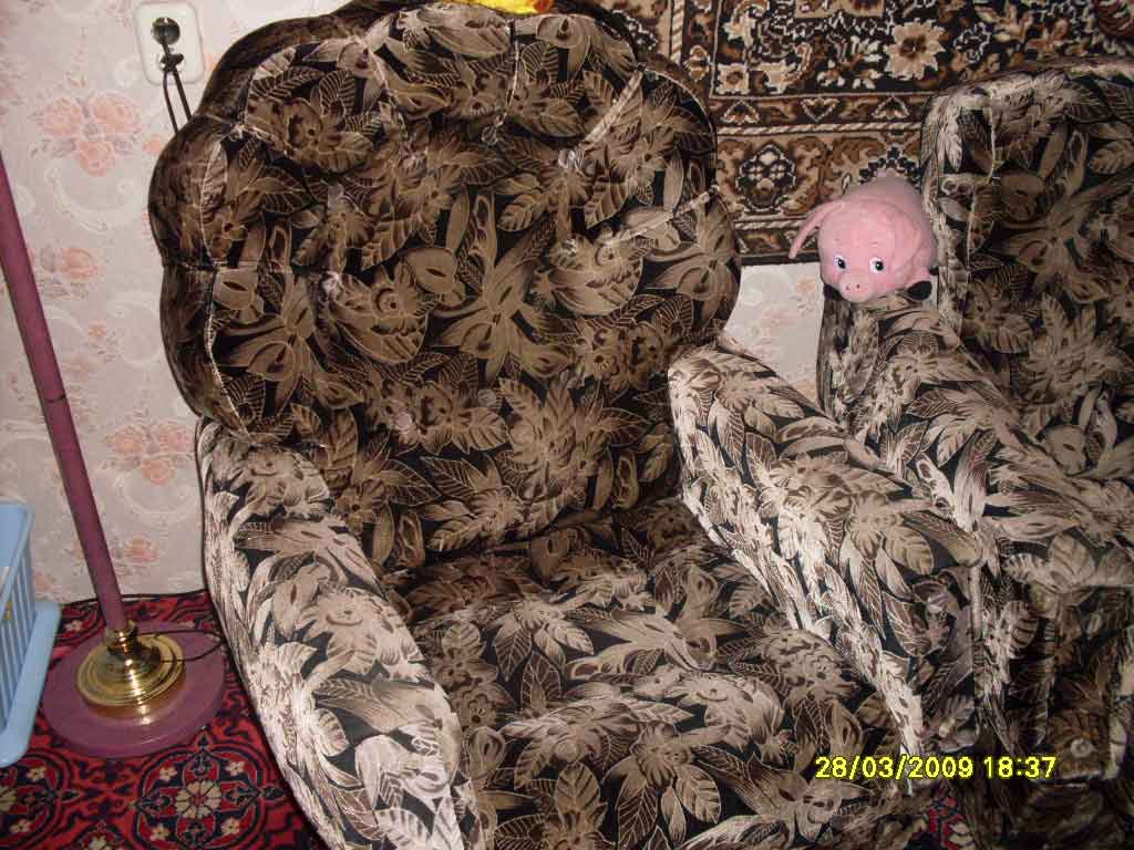 мягкая мебель (диван-книжка+2 кресла+ 2 пуфика) в хорошем состоянии. Ткань- велюр. Производство Россия.