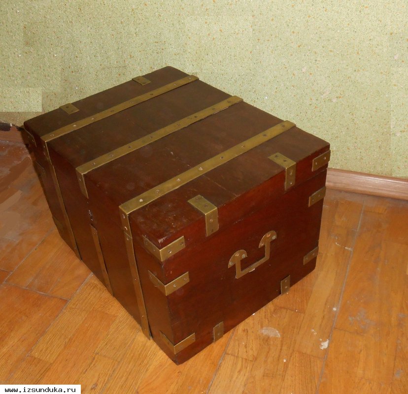 Продается вещевой сундук в отличном состоянии с кованными ручками для переноски. Шпон – красное дерево, ковка - латунь. Только самовывоз.