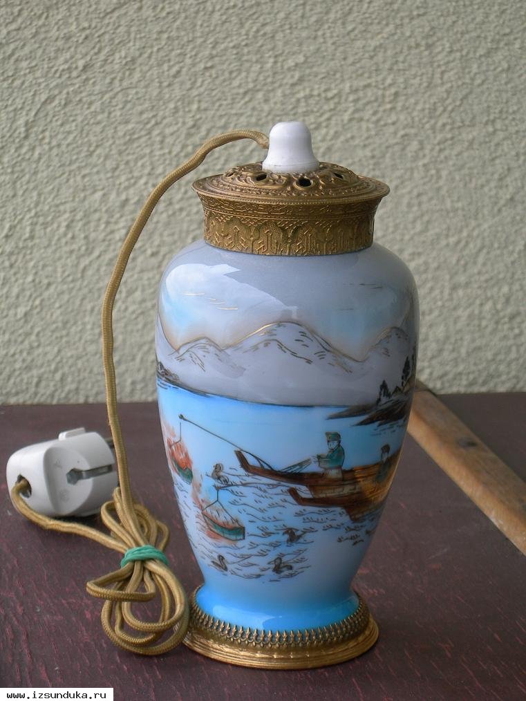 Тонкий японский фарфор,ручная роспиь,верхный и нижные ободки позолочены, лампа может использоватся как ваза