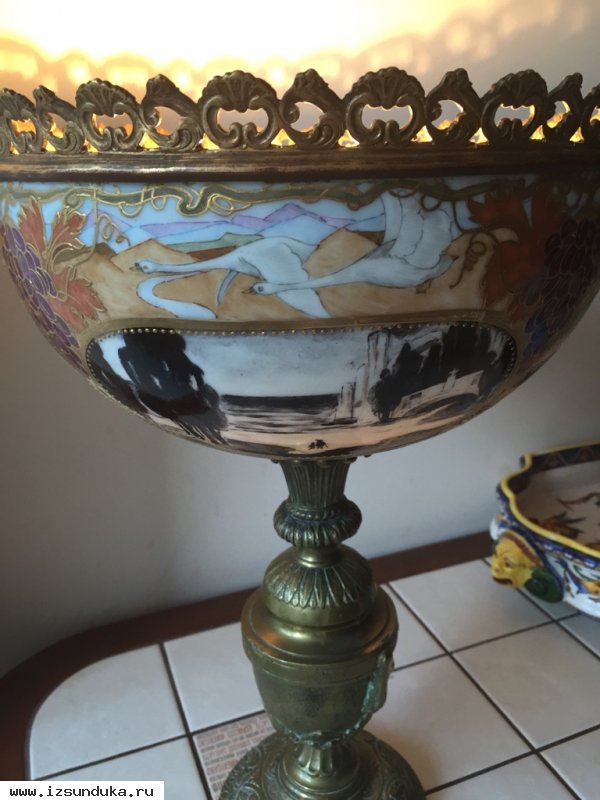 Настольная лампа, Франция. Бронза, стекло-ручная роспись.