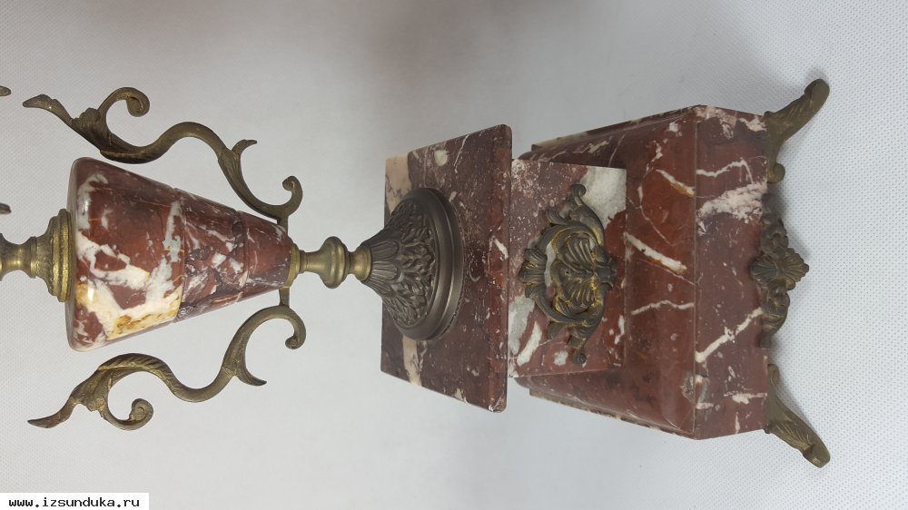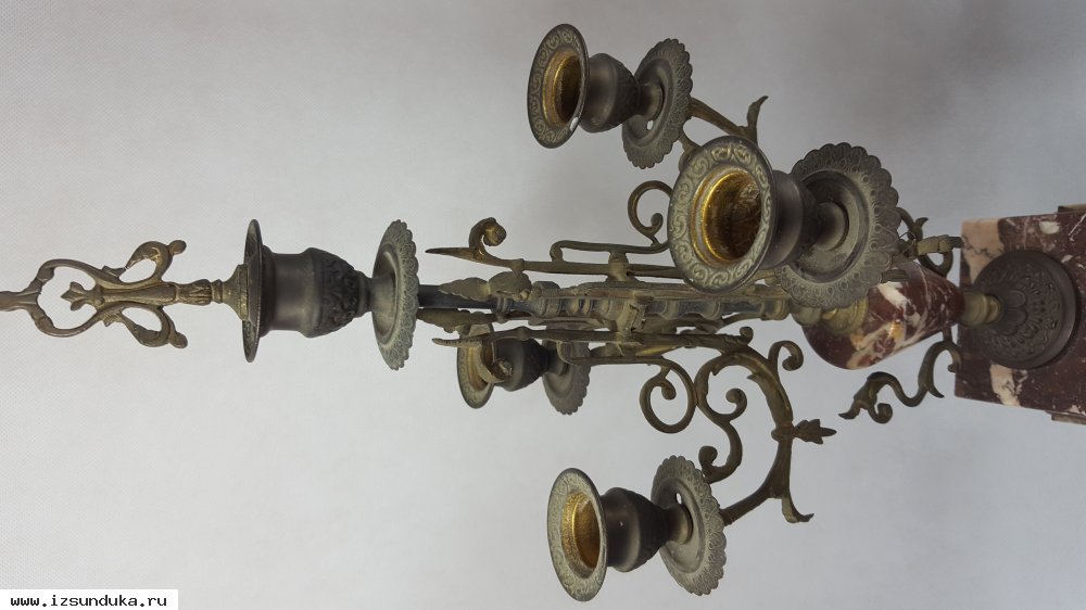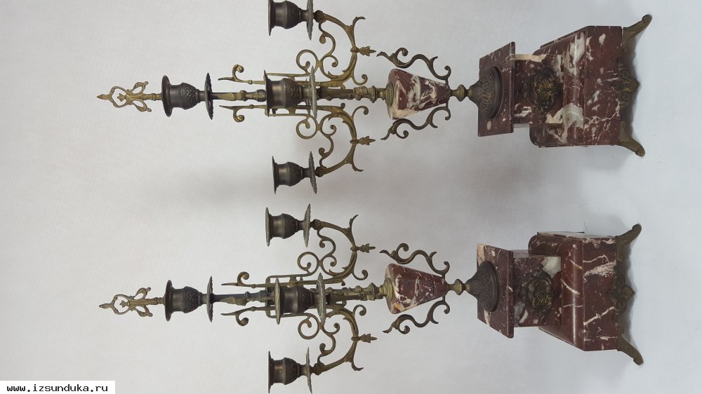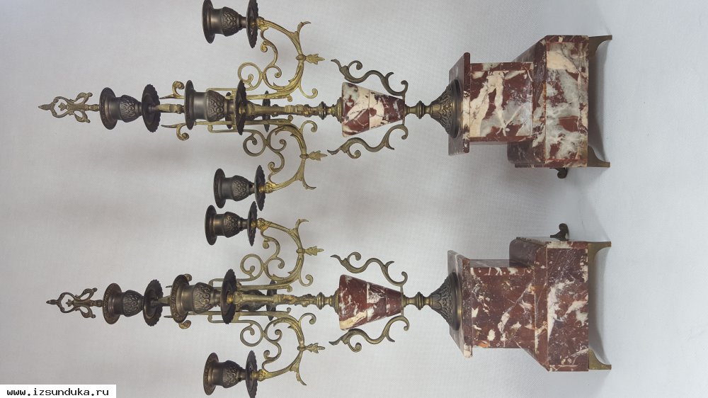 Красивые старенькие подсвечники из бронзы и мрамора,пара. Высота:59 см