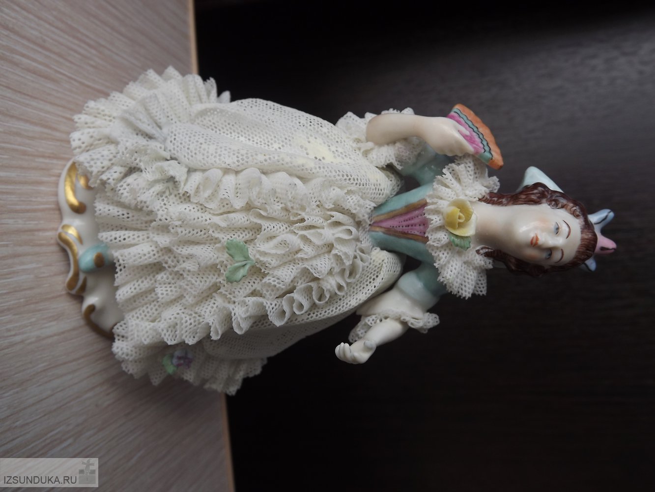 Фарфоровая кружевная статуэтка "Дама с веером"