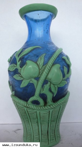 Китай, 19 век, двухслойное пекинское стекло, в синем стекле присутствуют серебряные блестки, 15 см