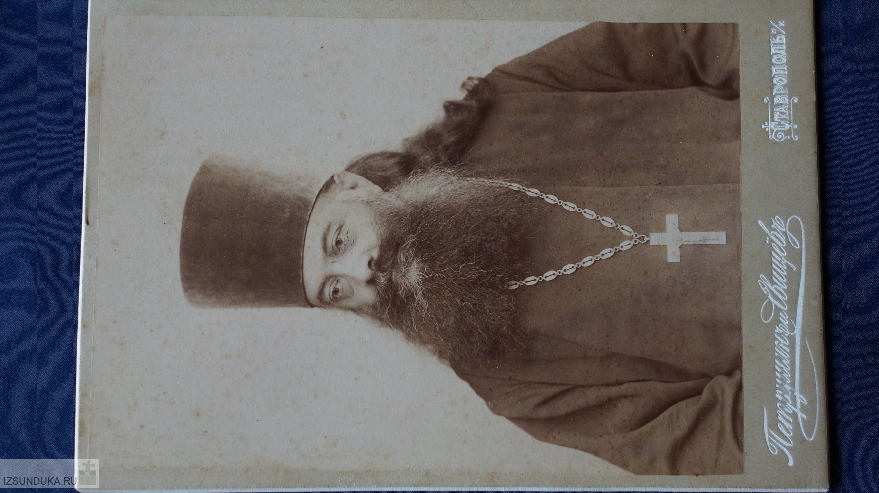 Добавлено 14.05.2019Кабинетный портрет соборного протоиерея в рясе с протоиерейским наградным крестом. Российская Империя, Ставрополь на Кубани, кон. XIX века.