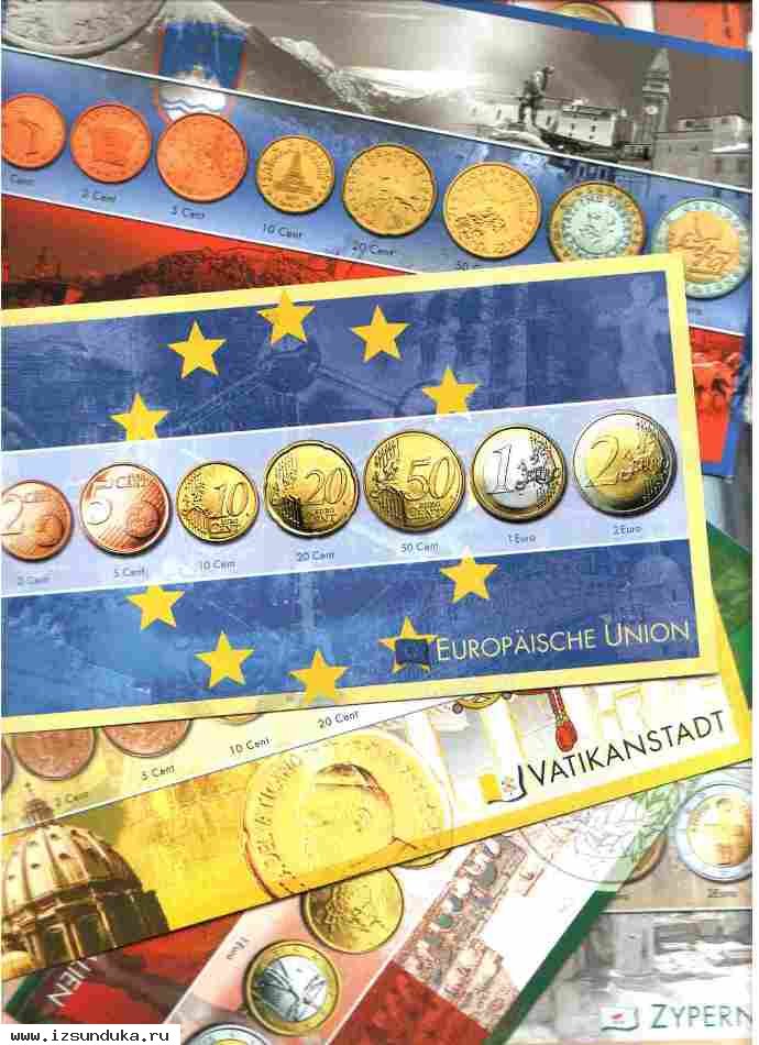 В набор входят 21 открытка увеличенного формата. Открытки изготовлены в Германии и отличаются высоким полиграфическим качеством. На каждой открытке представлена страна Евросоюза и её монеты от 1цента до 2 евро. Набор вызовет интерес нумизматов, финансистов, коллекционеров открыток и просто интересующихся.
