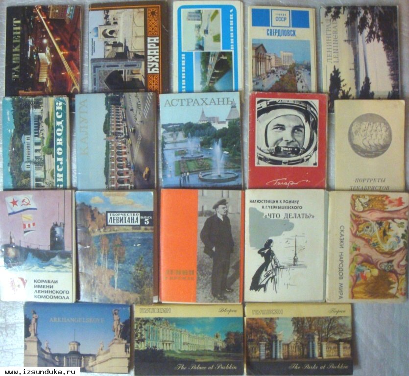Ленинград, Свердловск, Винница, Бухара, Ташкент, Калуга, Кисловодск, Юрий Гагарин, Портреты декабристов, Астрахань, Пушкин (парки), Пушкин (дворец), Архангельское, Корабли имени ленинского комсомола (вып 2), Творчество Левитана (вып 5), Сказки народов мира, Иллюстрации к роману Чернышевского, Ленин в кремле.
