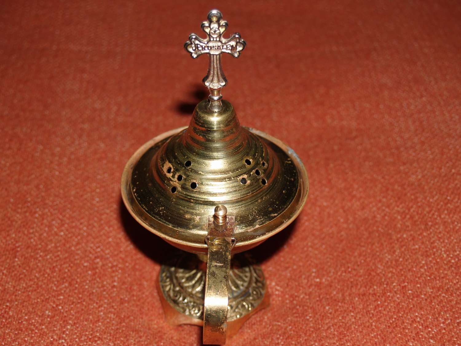 Добавлено 04.04.2018Кадильница с рукояткой греческая (кацея), c надписью «JERUSALEM» по гурту основания. Греция, сер. ХХ века.
