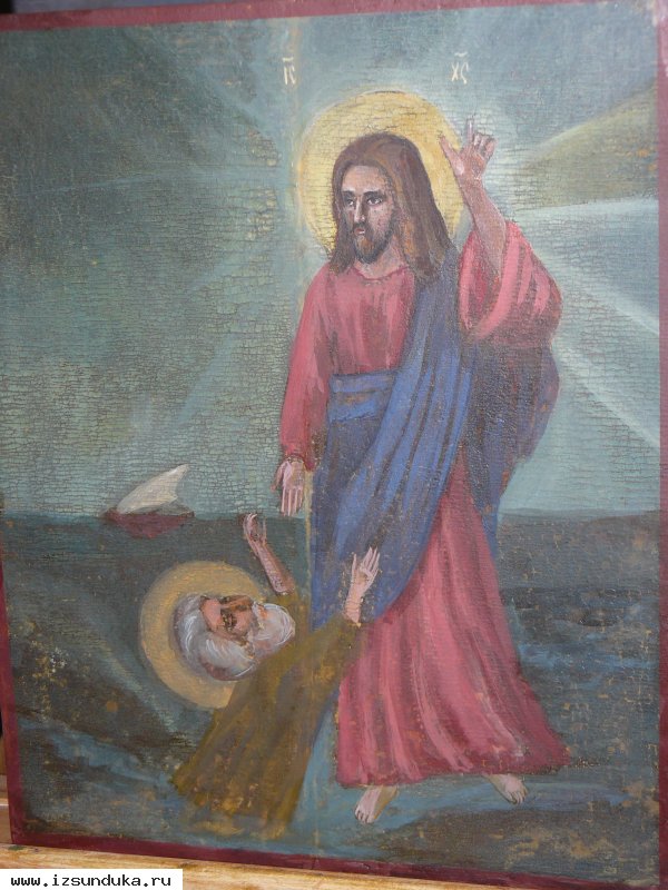 продам редко сюжетную икону 19 век, спасение утопающего петра, масло, размер 27*36