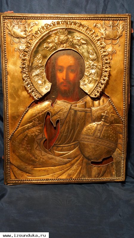 Икона Спасителя в тяжелом кованом окладе