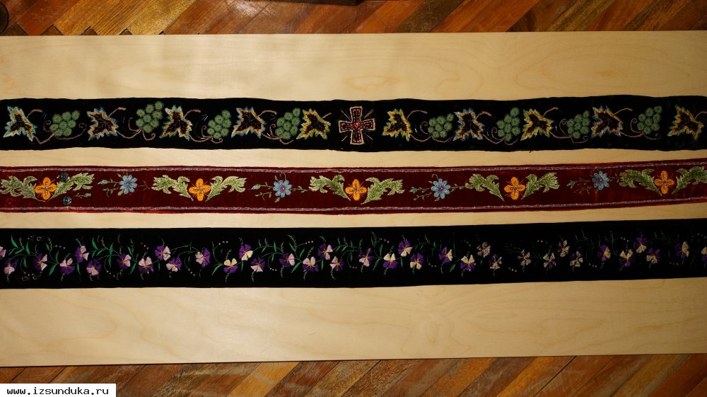 Добавлено 04.04.2018Три старинных расшитых иерейских (архиерейских) пояса. Россия, конец XIX века.