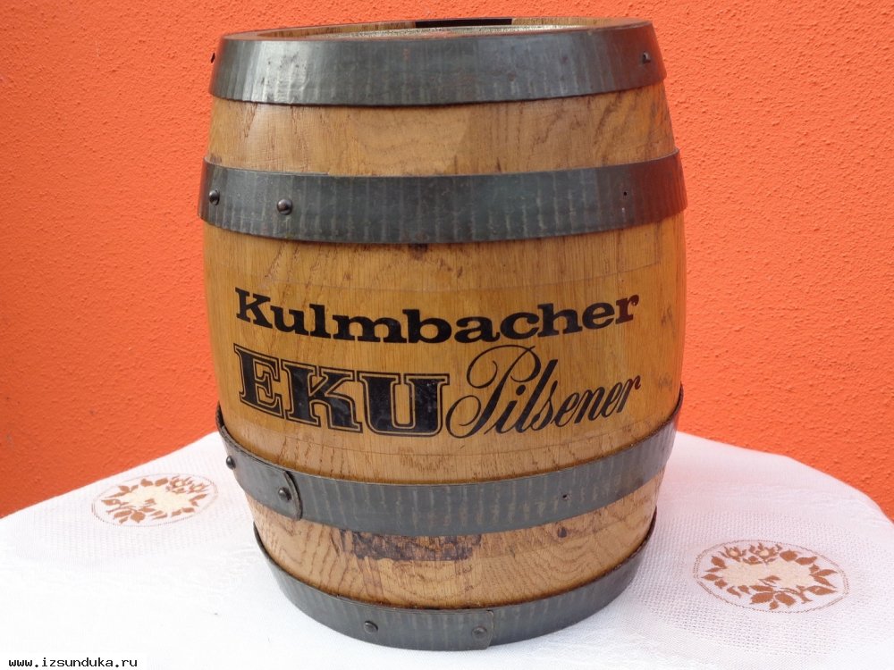 Декоративная Пиная Бочка дубовая бочка Пивовара EKU - Kulmbacher внутри помещается 4 х литроавая пивная банка
