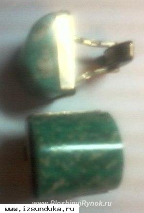 запонки, серебро позолоченное, камень-натуральный амазонит, 60-70 гг.