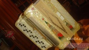 Продам эксклюзивный немецкий баян редчайшего цвета "золотой перламутр" с инкрустацией корпуса с камнями в виде кремлевских башен с оригинальными кожанными ремнями с рисунком