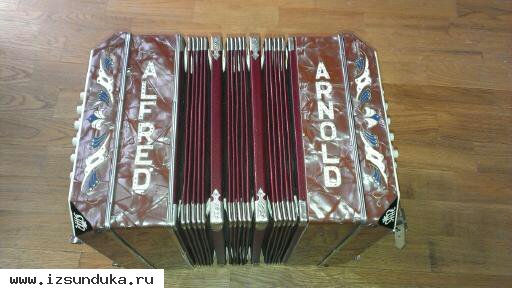 Добавлено 04.04.2018Антикварный немецкий диатонический Бандонеон Альфред Арнольд, 144 тона (35/37 кнопок).
