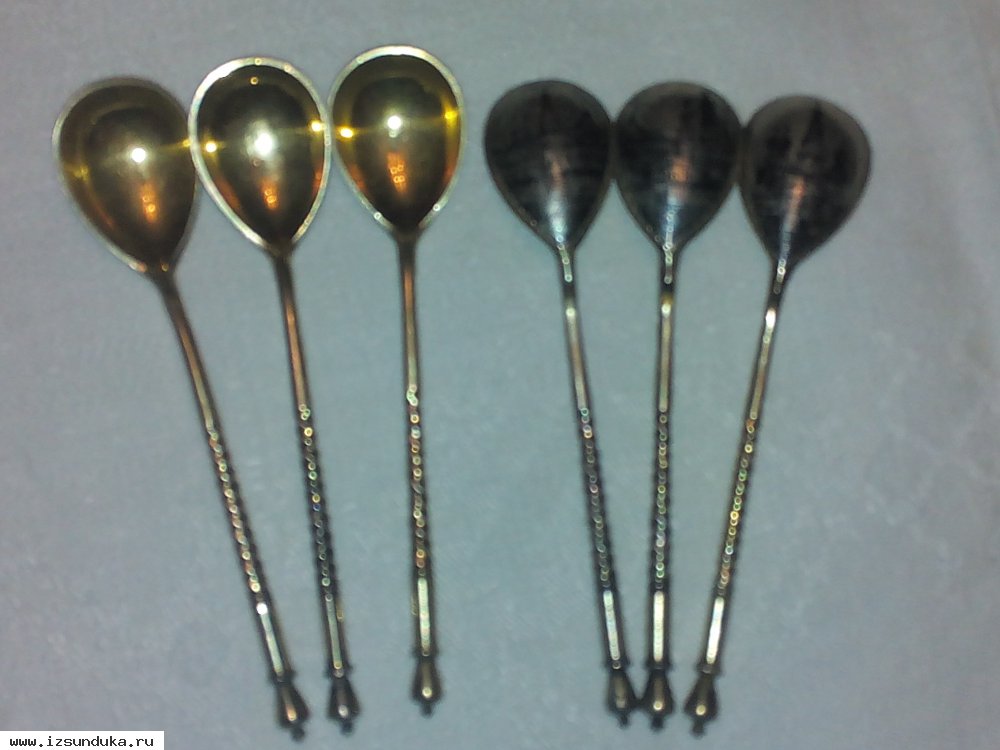 Продаются шесть кофейных ложек 84 пробы 1895 г., мастер Василий Антонов ("Красное") (клеймо "ВА"), 110 мм, вес -84 г, позолоченные, гравировка "Виды Москвы", в отличном состоянии