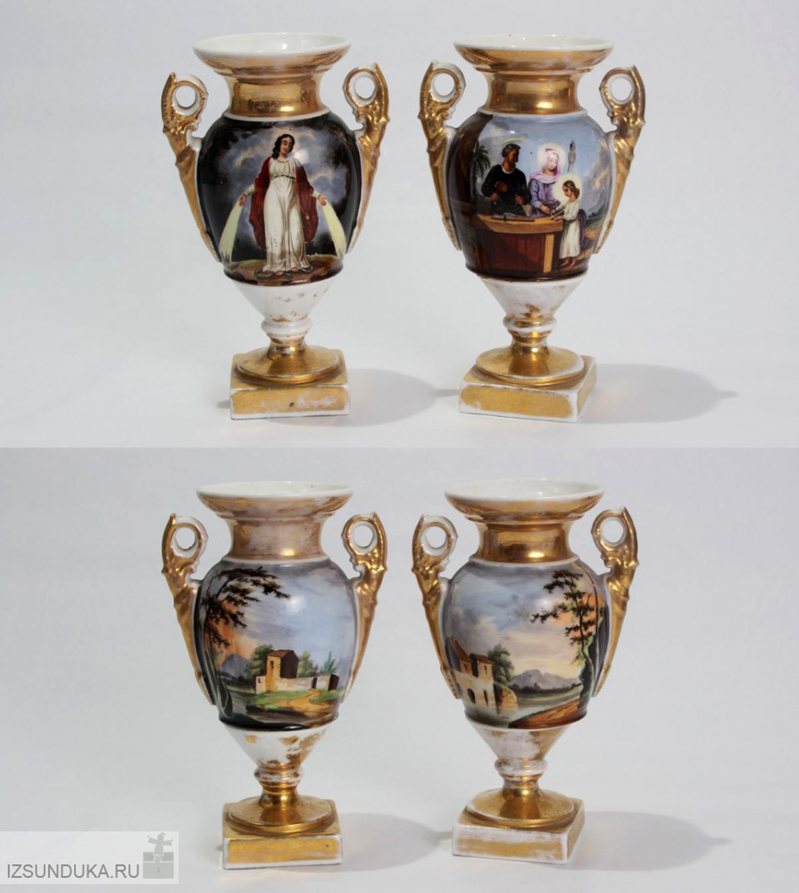 Пара фарфоровых вазочек с изображением Евангельских сюжетов