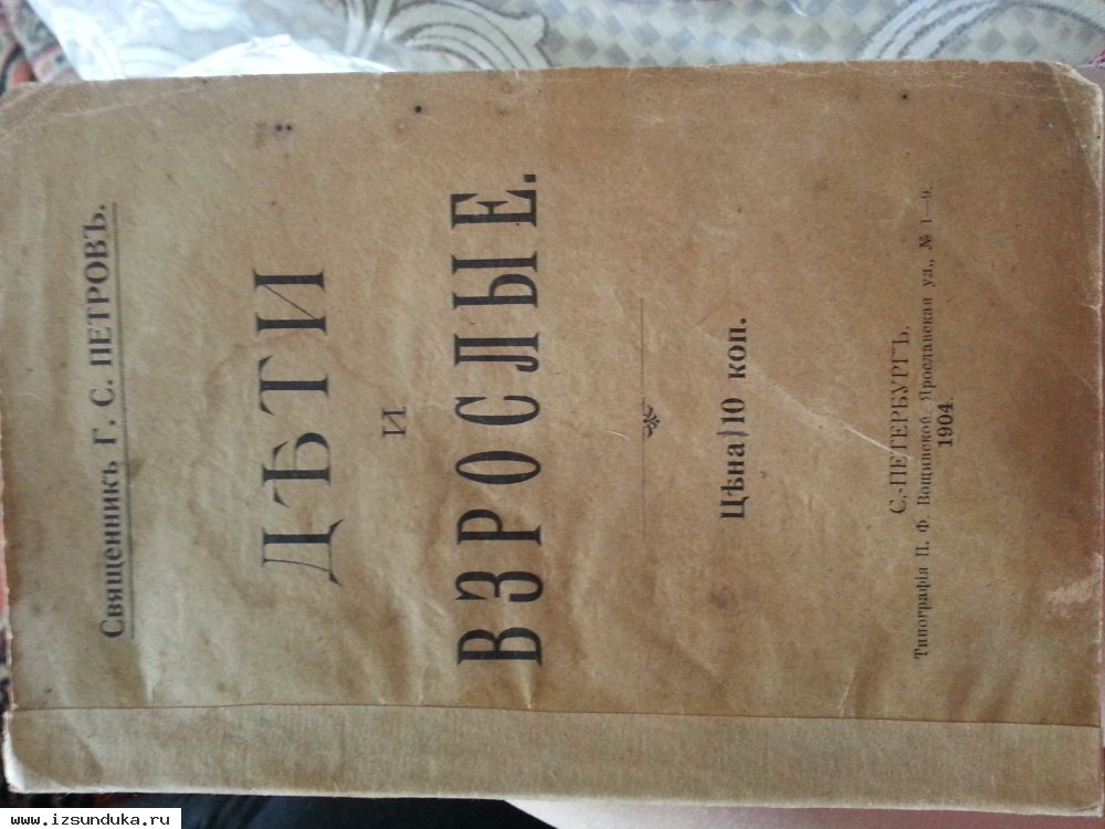 Продается антикварная книга в мягком переплете. Автор священник Петровъ Г.С. "Дъти и взрослые". Типография В.Ф. Вощинской, Санкт-Петербург.
