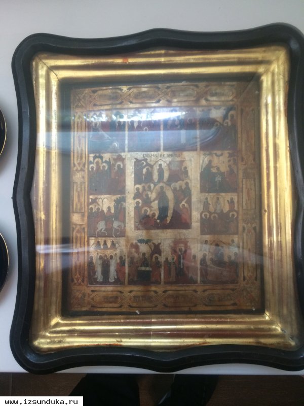 Икона "Праздники", 19 век, в киоте. 31х27.