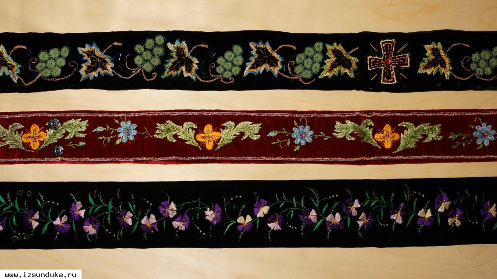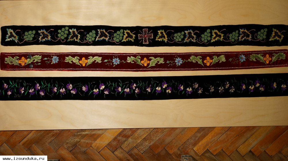Добавлено 04.04.2018Три старинных расшитых иерейских (архиерейских) пояса. Россия, конец XIX века.