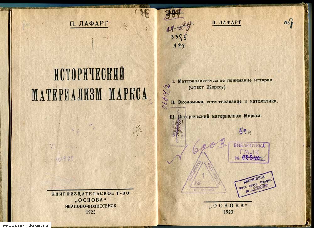 П. Лафарг Исторический материализм Маркса Книгоиздательское товарищество "Основа" 1923