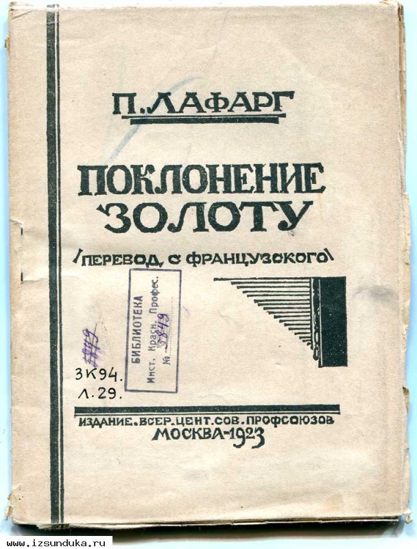 Лафарг П. Поклонение золоту. Перевод с французского. Москва 1923