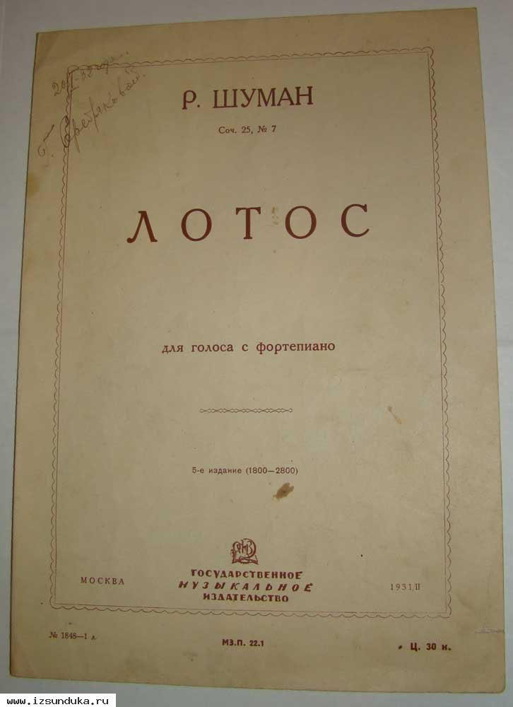 Лотос. Р.Шуман. соч.25№7. Для голоса а фортепиано 5-е издание )1800-2800) Государственное музыкальное издательство.