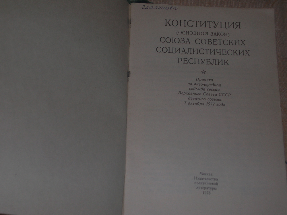 Брошюра "Конституция СССР", принятая 7 октября 1977. Издательство политической литературы, 1978.