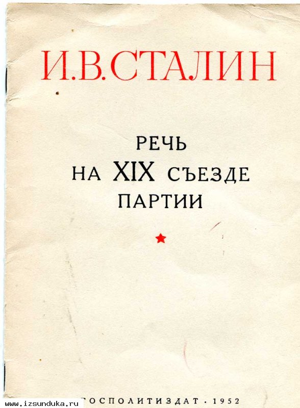 Сталин И.В. Речь на XIX съезде партии. 14 октября 1952 г. М. Госполитиздат 1952г. 14 с., портр. Мягкая обложка Обычный формат.