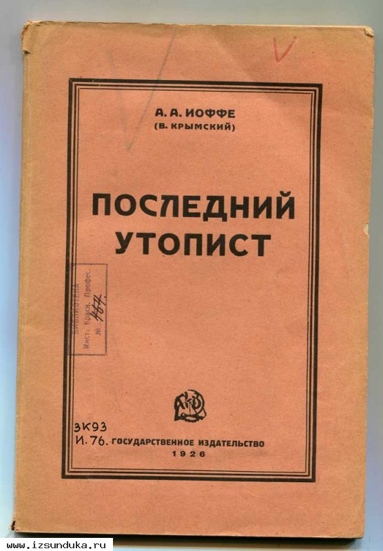 А А Иоффе Последний утопист 1926 Государственное издательство Ленинград