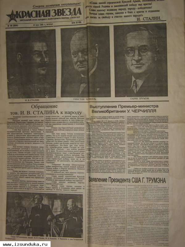 газета "Красная звезда" от 10 мая 1945 года. ,,,с обращением И.В.Сталина к народу