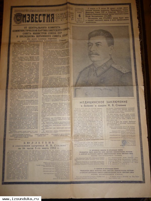 Газета "ИЗВЕСТИЯ" от 6 марта 1953 года