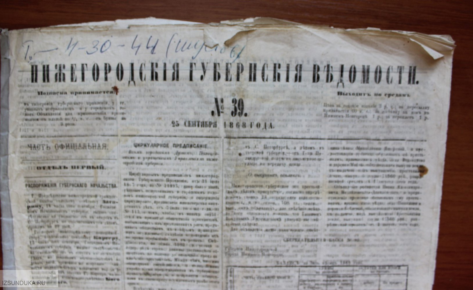 "Нижегородские губернские ведомости", газета от 25 сентября 1868 года