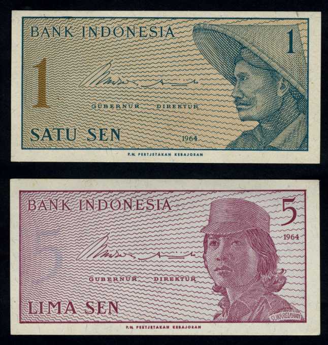 Дензнаки Индонезии 1964 г. в отличном состоянии 2 штуки за 100 руб.